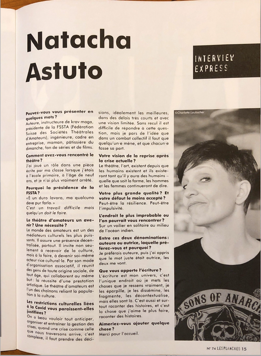 Natacha Astuto est l’invitée de l’Interview Express du magazine Les Planches dans son numéro de décembre 2020.